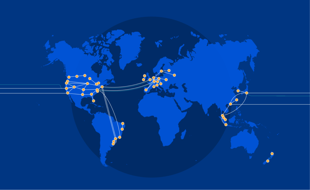 يربط العمود الفقري العالمي للإنترنت Internet Backbone بشكل أساسي الشبكات المحلية والأنظمة المستقلة عبر البلدان والمحيطات حول العالم. والذي يعتبر أكبر وأسرع ربط للشبكات من خلال وصلات الألياف البصرية وأجهزة التوجيه عالية الأداء.